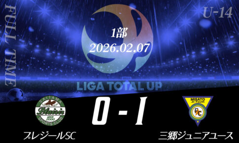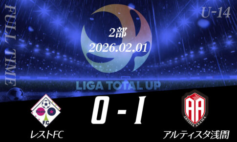 LIGA TOTAL UPについて 本リーグは埼玉県ジュニアユースサッカーで育った選手が世界に誇れるサッカー選手、社会で活躍する大人へ成長するための育成を目的とした私設リーグです。 大会概要 新着記事 2026シーズン『新規加盟クラブ募集スタート』2026.01.21サッカーブランドTRES(トレス)とお得な情報のご案内2025.08.22COL Sports management 合同セレクション開催のお知らせ2025.08.04COL Sports management合同セレクション(小6)開催のお知らせ2025.07.18弊社栄養士による、夏場の成長促進に向けたオンラインセミナー開催のお知らせ2025.06.26LIGA TOTALUP SPONSOR『総合スポーツブランドTRES』2025.06.11新加盟チームのお知らせ2025.05.28メディア掲載情報2025.04.18 最新の試合結果 S.S.CANTERA vs ファルカオ久喜2026.02.12レストFC vs YOSHIKAWA CITY FC2026.02.12FC.L-BLOOM vs フォルチFC2026.02.12クマガヤSC vs GRAMADO FC2026.02.12Y’s FOOTBALL CLUB vs MSK192026.02.12プレジールSC vs 三郷ジュニアユース2026.02.12埼玉栄中学校 vs ファルカオ久喜2026.02.12レストFC vs アルティスタ浅間2026.02.12埼玉オーステン vs SHIRAOKA K’s SC2026.02.05フォルチFC vs ファルカオ久喜2026.02.05西武台新座中学校 vs fervore富岡2026.02.03AGEO CITY FC vs fervore富岡2026.02.03プレジールSC vs 武南ジュニアース2026.02.03FCプロスペリダージ vs レストFC2026.02.03YOSHIKAWA CITY FC vs ファルカオ久喜2026.02.03三郷ジュニアユース vs 見沼FC2026.02.03 試合結果 試合結果一覧 2026/2/1~28試合結果2026.02.122026/1/1~31試合結果2026.01.192025/12/1~31試合結果2026.01.19U-15/U-16 試合結果(12月)2025.12.182025/11/1~30試合結果2025.12.05U-15/U-16 試合結果(11月)2025.11.282025/10/1~31試合結果2025.11.04U-15/U-16 試合結果(10月)2025.10.07 リーグ表・結果 1部 2部 3部 1部 2部 3部 北部 南部 Liga Sponsor リーグ運営/事務局