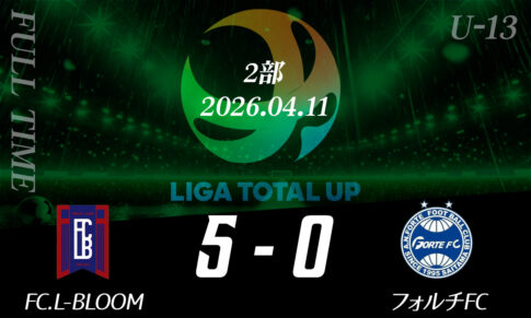 LIGA TOTAL UPについて 本リーグは埼玉県ジュニアユースサッカーで育った選手が世界に誇れるサッカー選手、社会で活躍する大人へ成長するための育成を目的とした私設リーグです。 大会概要 新着記事 2026シーズン、新たに「LIGA TOTALUP FUJI」「LIGA TOTALUP KEIHIN」が始動!2026.03.18オリジナルTシャツ販売START2026.03.18LIGA TOTALUP SAITAMA &IBARAKI 4月開幕2026.03.042026 LIGA TOTALUP IBARAKI新設のお知らせ2026.03.01高校サッカードットコム、YAHOO!ニュースに掲載されました!2026.02.182026シーズン『新規加盟クラブ募集スタート』2026.01.21サッカーブランドTRES(トレス)とお得な情報のご案内2025.08.22COL Sports management 合同セレクション開催のお知らせ2025.08.04 最新の試合結果 OKEGAWA FC vs fervore富岡2026.04.14OKEGAWA FC vs 川口市立西中学校2026.04.14FC狭山ジュニアユース vs 川口市立西中学校2026.04.14上尾SC vs フォルチFC2026.04.14川越福原サッカークラブ vs FC狭山ジュニアユース2026.04.14FC.L-BLOOM vs フォルチFC2026.04.14GRANDE FC vs FC深谷2026.04.14川越福原サッカークラブ vs OTA CITY FC2026.04.14GRANDE FC vs クマガヤSC2026.04.14FC深谷 vs クマガヤSC2026.04.14川越福原サッカークラブ vs 鴻巣FC2026.04.14OKEGAWA FC vs 鴻巣FC2026.04.14 試合結果 試合結果一覧 U-13/U-14 試合結果(4月)2026.04.08 参加カテゴリ 埼玉SAITAMA 1部 2部 3部 1部 2部 3部 北部 南部 茨城IBARAKI Liga Sponsor リーグ運営/事務局