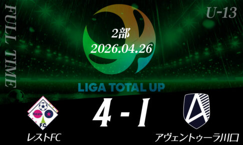 LIGA TOTAL UPについて 本リーグは埼玉県ジュニアユースサッカーで育った選手が世界に誇れるサッカー選手、社会で活躍する大人へ成長するための育成を目的とした私設リーグです。 大会概要 新着記事 新スポンサー「株式会社川越不動産様(2026シーズン)」のお知らせ2026.04.20高校サッカードットコム、YAHOO!ニュースに掲載されました!2026.04.172026シーズン、新たに「LIGA TOTALUP FUJI」「LIGA TOTALUP KEIHIN」が始動!2026.03.18オリジナルTシャツ販売START2026.03.18LIGA TOTALUP SAITAMA &IBARAKI 4月開幕2026.03.042026 LIGA TOTALUP IBARAKI新設のお知らせ2026.03.01高校サッカードットコム、YAHOO!ニュースに掲載されました!2026.02.182026シーズン『新規加盟クラブ募集スタート』2026.01.21 最新の試合結果 境トリニタス vs LEARNERS2026.04.22FCプロスペリダージ vs 越谷FC2026.04.20AzuLente KAZO vs fervore富岡2026.04.20大宮西カリオカFC vs フォルチFC2026.04.20GRANDE FC vs アルティスタ浅間2026.04.20GRANDE FC vs プレジールSC2026.04.20OKEGAWA FC vs fervore富岡2026.04.14OKEGAWA FC vs 川口市立西中学校2026.04.14FC狭山ジュニアユース vs 川口市立西中学校2026.04.14上尾SC vs フォルチFC2026.04.14川越福原サッカークラブ vs FC狭山ジュニアユース2026.04.14FC.L-BLOOM vs フォルチFC2026.04.14 試合結果 試合結果一覧 IBARAKI U-14 試合結果(4月)2026.04.22U-13/U-14 試合結果(4月)2026.04.08 参加カテゴリ 埼玉SAITAMA 1部 2部 3部 1部 2部 3部 北部 南部 茨城IBARAKI Liga Sponsor リーグ運営/事務局