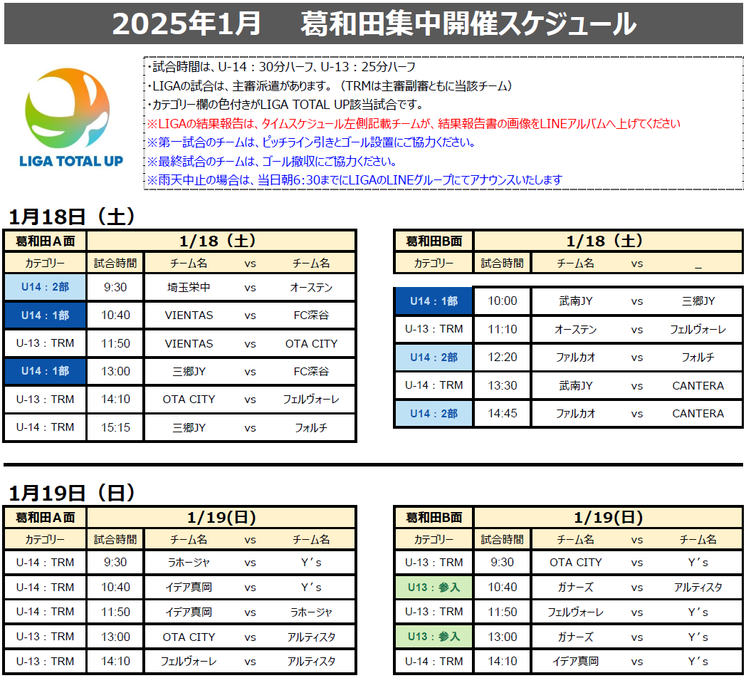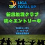 【U-13/U-14】1月18日(土)~19日(日)『LIGA TOTAL UP葛和田サッカー場』イベント2025.01.14 2025シーズンも新規加盟クラブが続々エントリー中!【U-13/U-14】1月11日(土)~13日(月祝)『LIGA TOTALUP葛和田サッカー場』