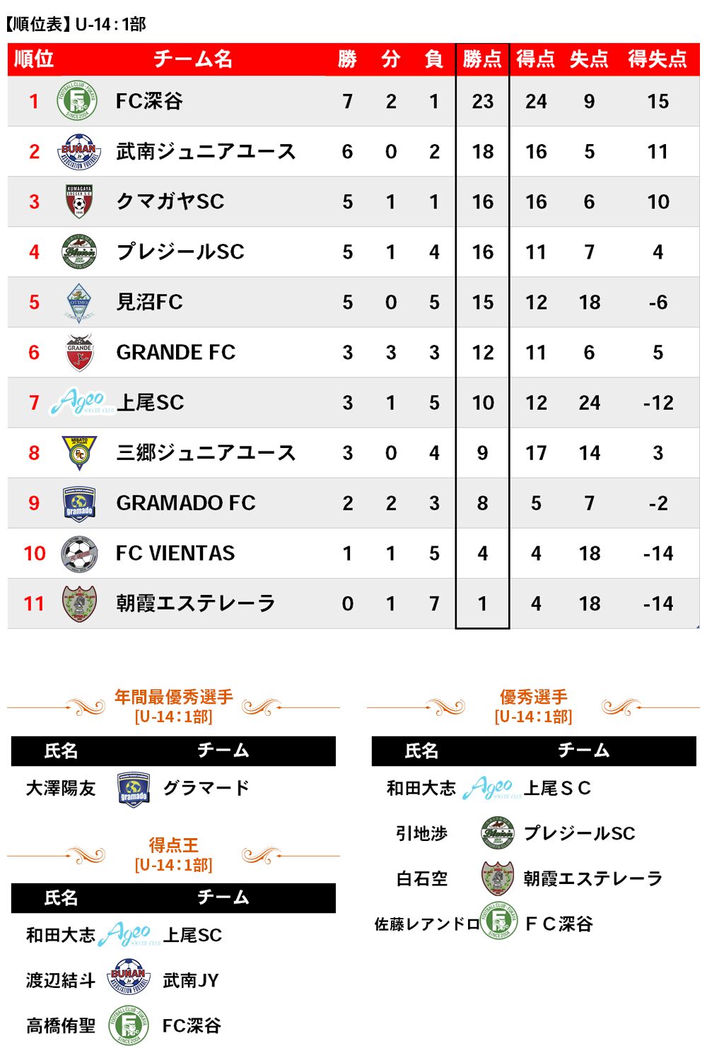 | FC深谷 | 〇 2-1 | △ 0-0 | 〇 1-0 | 〇 5-1 | 〇 2-0 | 〇 2-1 | ● 2-3 | △ 3-3 | 〇 4-0 | 〇 3-0 | |