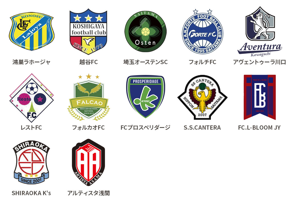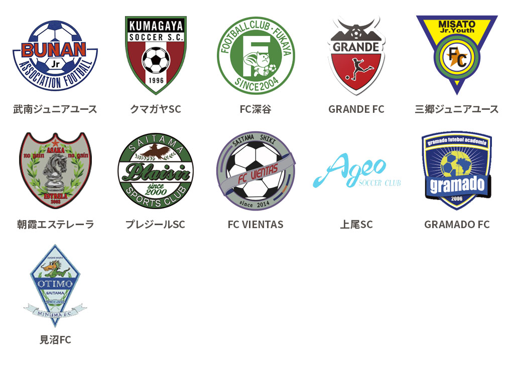 | 1部 | 武南ジュニアユース | クマガヤSC | FC深谷 | GRANDE FC | 三郷ジュニアユース | 朝霞エステレーラ | プレジールSC | FC VIENTAS | 上尾SC | GRAMADO FC | 見沼FC |