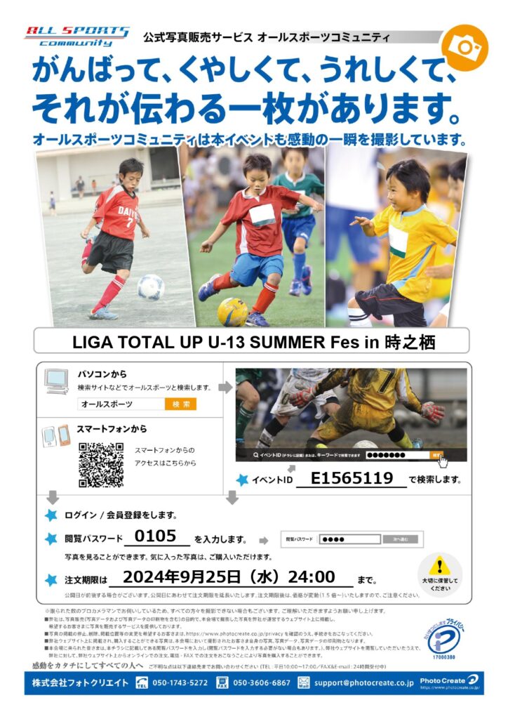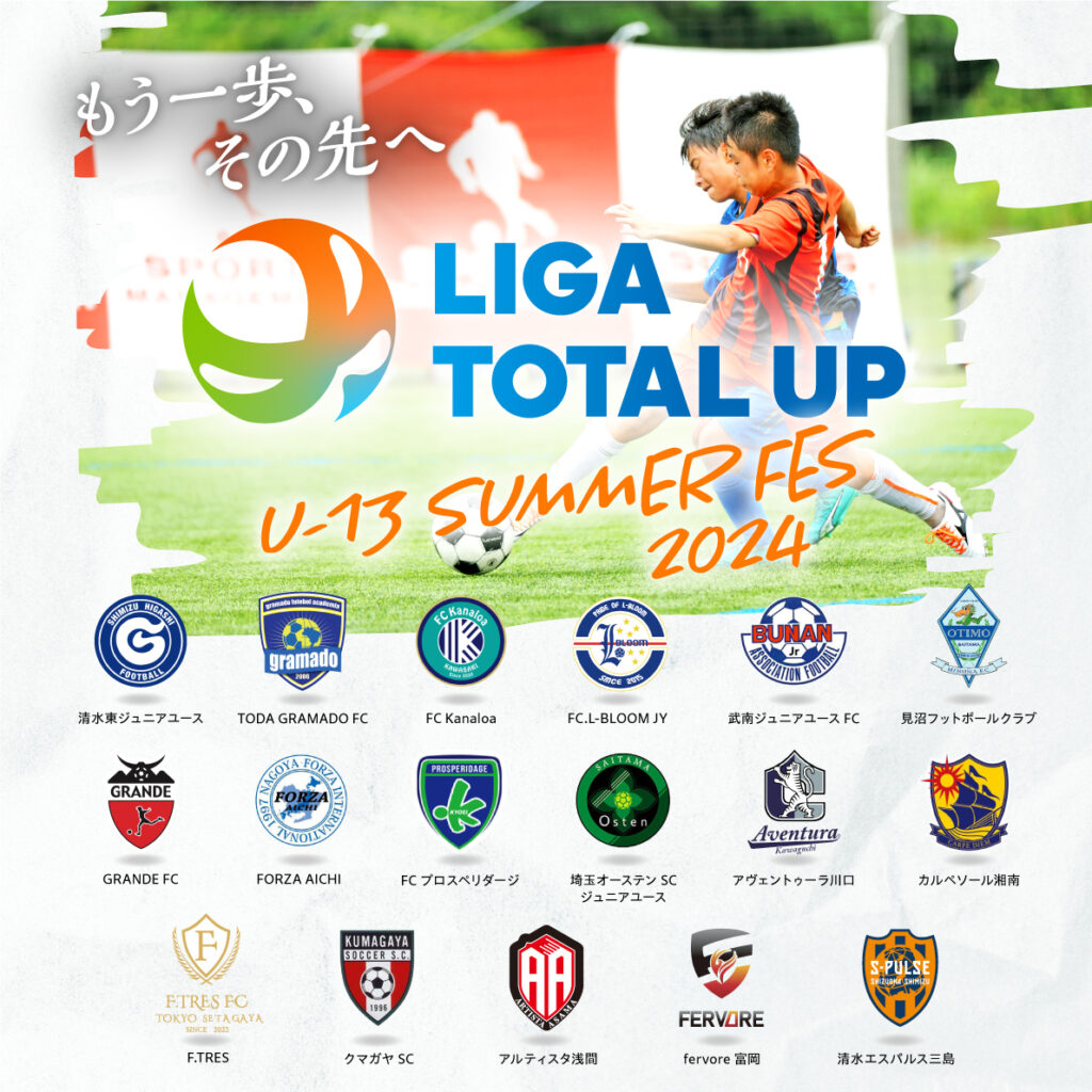 U-13世代の夏場のチーム強化・個人スキルの向上を目的に、7月31日から3日間をかけ『LIGA TOTAL UP U-13 SUMMER Fes 2024』を開催いたします。