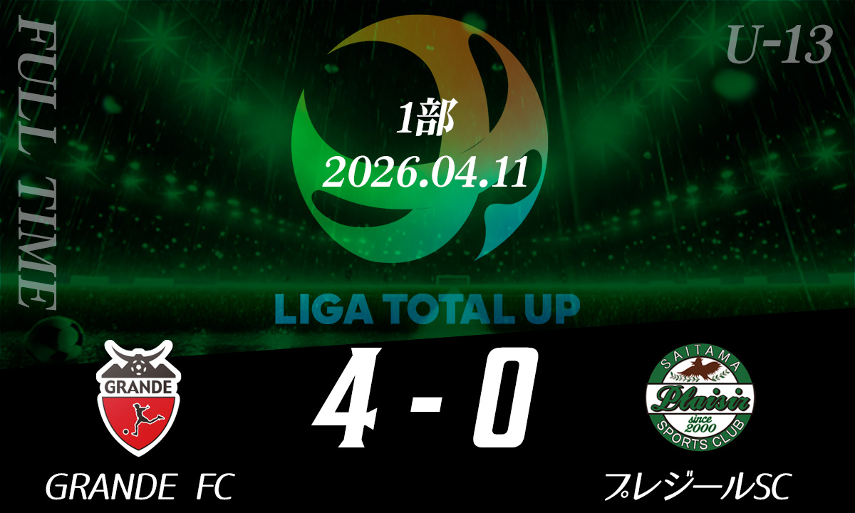 GRANDE FC vs プレジールSC 25 杉尾音太郎4 石井晴翔3 安東葉琉36 細井龍桜得点者ー25 杉尾音太郎MOM1 松尾悠史 その他試合結果 GRANDE FC vs アルティスタ浅間GRANDE FC vs プレジールSCクマガヤSC vs プレジールSCアルティスタ浅間 vs クマガヤSCアルティスタ浅間 vs GRAMADO FCクマガヤSC vs GRAMADO FC GRANDE FC vs アルティスタ浅間新スポンサー「株式会社川越不動産様(2026シーズン)」のお知らせ