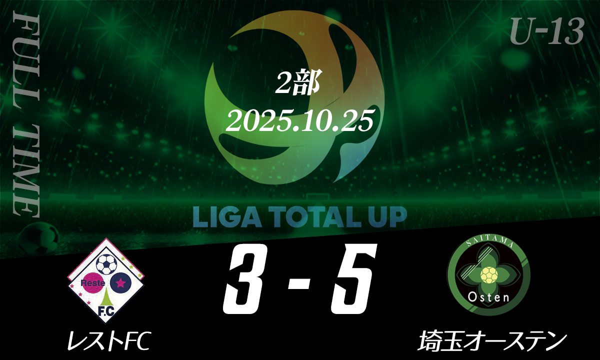レストFC vs 埼玉オーステン 14 柴山拓士14 柴山拓士9 齋藤星翔得点者9 生井陽大9 生井陽大10 高橋琉煌47 山崎羚央37 島袋裕誠14 柴山拓士MOM9 生井陽大 その他試合結果 レストFC vs 埼玉オーステン2025.11.05埼玉栄中学校 vs 大宮西カリオカFC2025.10.21FC.L-BLOOM vs 埼玉オーステン2025.10.18ファルカオ久喜 vs 埼玉オーステン2025.10.18越谷FC vs 鴻巣ラホージャ2025.10.18FCプロスペリダージ vs 埼玉栄中学校2025.10.18越谷FC vs FCプロスペリダージ2025.10.18FC.L-BLOOM vs YOSHIKAWA CITY FC2025.09.29 fervore富岡 vs ネクサスSV2025/10/1~31試合結果