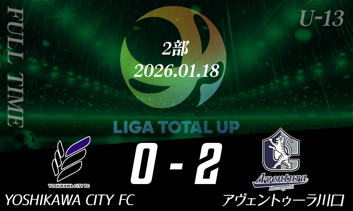 YOSHIKAWA CITY FC vs アヴェントゥーラ川口 ー得点者95 吉田陽紀93 森田碧35 大段陸MOM88 原澤朝陽 その他試合結果 YOSHIKAWA CITY FC vs アヴェントゥーラ川口越谷FC vs S.S.CANTERAFCプロスペリダージ vs S.S.CANTERAフォルチFC vs アルティスタ浅間YOSHIKAWA CITY FC vs フォルチFCFCプロスペリダージ vs YOSHIKAWA CITY FC埼玉栄中学校 vs フォルチFCファルカオ久喜 vs FC.L-BLOOM AGEO CITY FC vs FC.STIMOLANTEプレジールSC vs 上尾SC