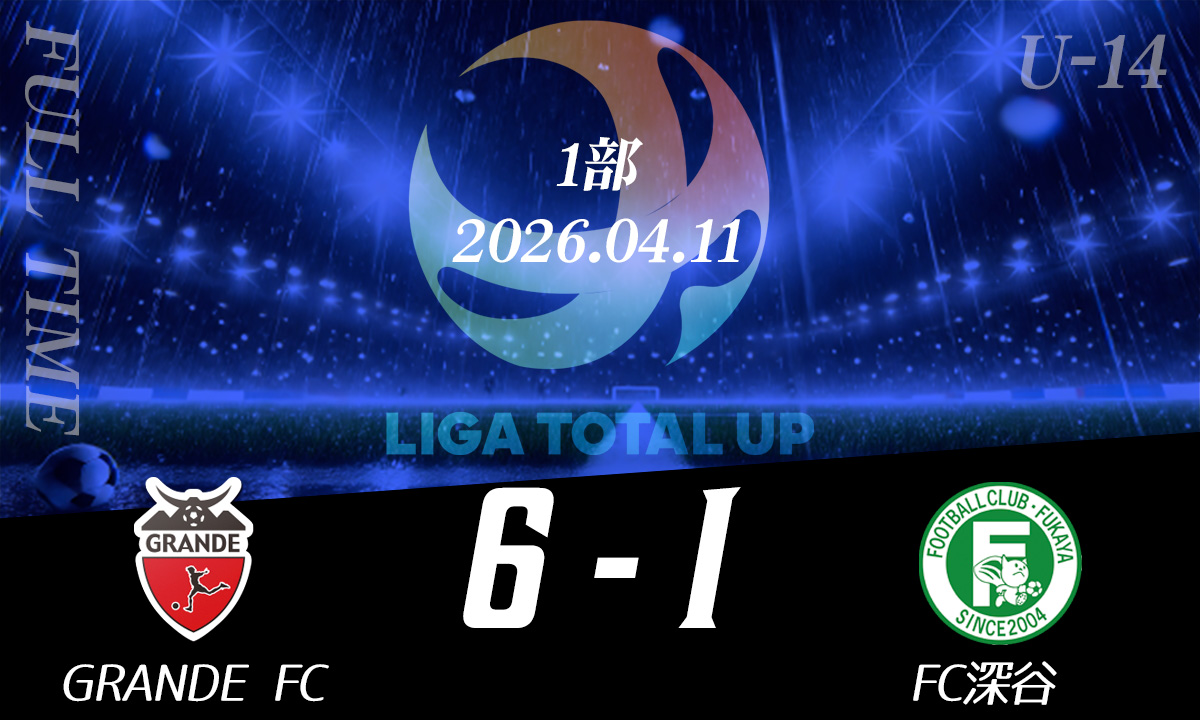 GRANDE FC vs FC深谷 OG38 長谷川敬汰33 巴楽玖35 中矢葵OG18 黒田樹生得点者6 田子皓基11 小澤晴太MOM1 森一颯 その他試合結果 GRANDE FC vs FC深谷GRANDE FC vs クマガヤSCFC深谷 vs クマガヤSC FC.L-BLOOM vs フォルチFC川越福原サッカークラブ vs OTA CITY FC