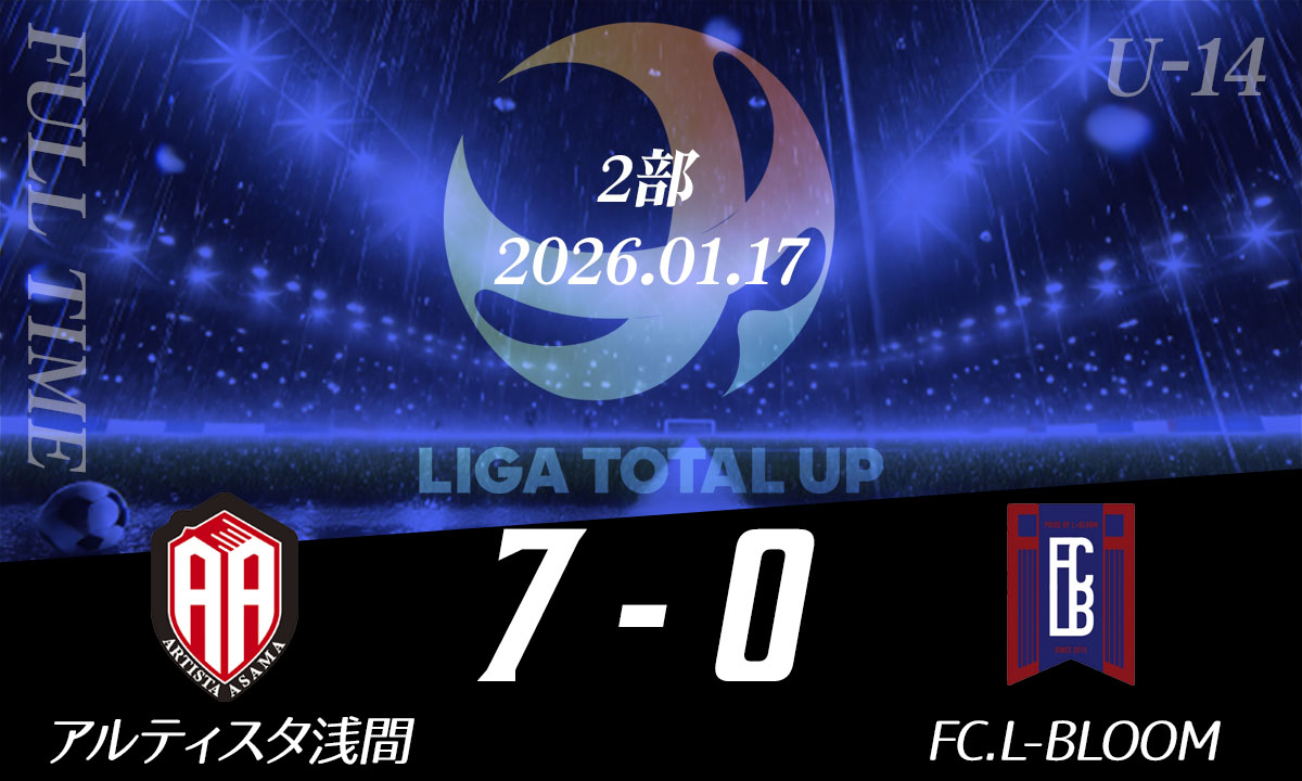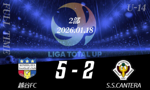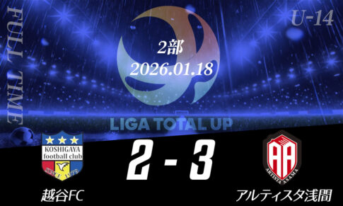 アルティスタ浅間 vs FC.L-BLOOM 98 平林賢人56 金澤幸輝×352 滝沢宗大×277 大塚樹得点者ー56 金澤幸輝MOM9 二階堂脩斗 その他試合結果 越谷FC vs アルティスタ浅間2026.01.22越谷FC vs S.S.CANTERA2026.01.22アルティスタ浅間 vs FC.L-BLOOM2026.01.22鴻巣ラホージャ vs ファルカオ久喜2026.01.21FCプロスペリダージ vs S.S.CANTERA2026.01.21フォルチFC vs アヴェントゥーラ川口2026.01.21ファルカオ久喜 vs FC.L-BLOOM2026.01.21S.S.CANTERA vs 鴻巣ラホージャ2026.01.21 越谷FC vs S.S.CANTERAプレジールSC vs 武南ジュニアユース