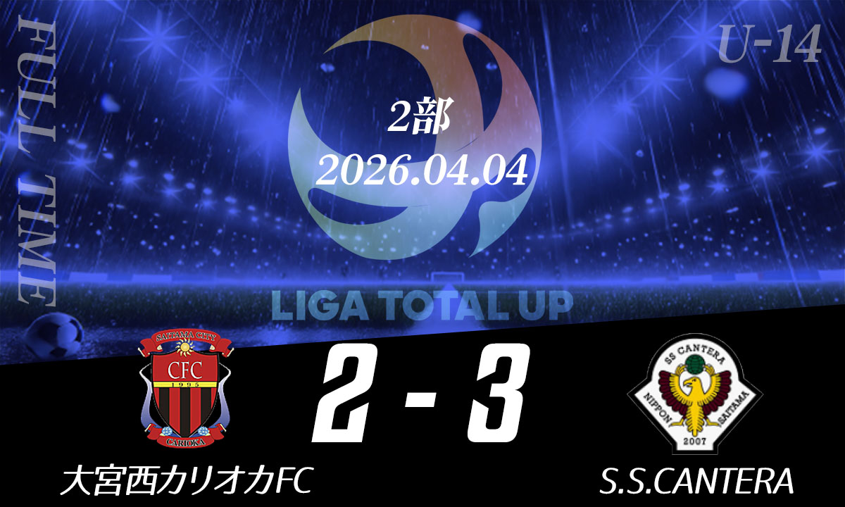 大宮西カリオカFC vs S.S.CANTERA 13 長谷川司38 安藤羽生斗得点者11 三村悠真 × 217 堀口和葉38 安藤羽生斗MOM11 三村悠真 その他試合結果 上尾SC vs フォルチFCFC.L-BLOOM vs アヴェントゥーラ川口大宮西カリオカFC vs S.S.CANTERA鴻巣ラホージャ vs SHIRAOKA K’s埼玉オーステン vs 鴻巣ラホージャ埼玉オーステン vs SHIRAOKA K’sアヴェントゥーラ川口 vs フォルチFCネクサスSV vs 大宮西カリオカFC FC.L-BLOOM vs アヴェントゥーラ川口フォルチFC vs ネクサスSV