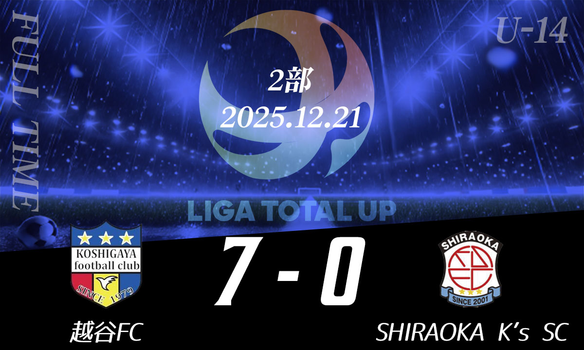 越谷FC vs SHIRAOKA K’s SC 38 野川恵祐×331 神田篤汰30 森泉敬弥9 東愛翔11 内田侑利得点者ー35 藤田空斗MOM16 井上恵太 その他試合結果 越谷FC vs SHIRAOKA K’s SC2025.12.24FCプロスペリダージ vs SHIRAOKA K’s SC2025.12.24フォルチFC vs SHIRAOKA K’s SC2025.12.24ファルカオ久喜 vs FCプロスペリダージ2025.12.18アヴェントゥーラ川口 vs レストFC2025.12.18FCプロスペリダージ vs アヴェントゥーラ川口2025.12.11FC.L-BLOOM vs フォルチFC2025.12.11埼玉オーステン vs 鴻巣ラホージャ2025.12.11 埼玉栄中学校 vs フォルチFCGRAMADO FC vs 武南ジュニアユース
