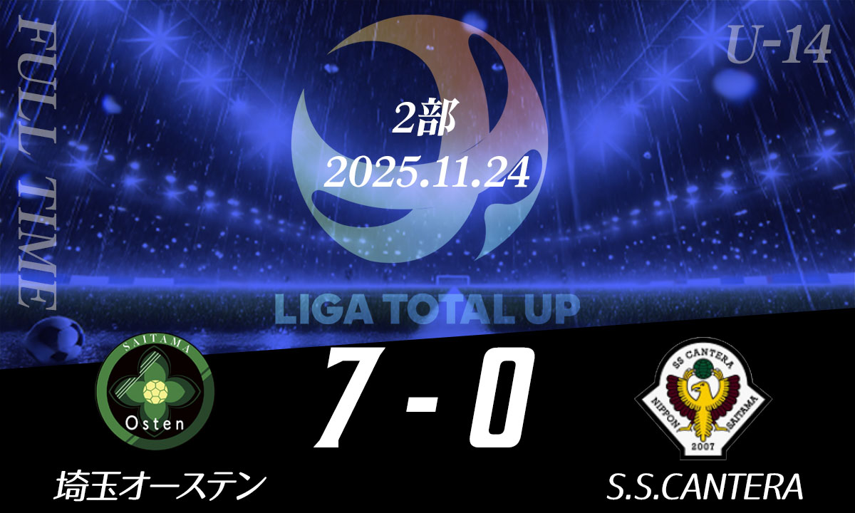 埼玉オーステン vs S.S.CANTERA 27 関野聡詩 / 40 内田桔平9 生井陽大 / 36 岡田爽汰27 関野聡詩 / 35 江頭悠輔13 馬場遼得点者ー13 馬場遼MOM11 三村悠真 その他試合結果 アルティスタ浅間 vs S.S.CANTERA2025.11.26埼玉オーステン vs アルティスタ浅間2025.11.26フォルチFC vs アルティスタ浅間2025.11.26埼玉オーステン vs S.S.CANTERA2025.11.26フォルチFC vs S.S.CANTERA2025.11.26ファルカオ久喜 vs アヴェントゥーラ川口2025.11.26レストFC vs FC.L-BLOOM2025.11.12越谷FC vs FC.L-BLOOM2025.10.18 フォルチFC vs アルティスタ浅間フォルチFC vs S.S.CANTERA