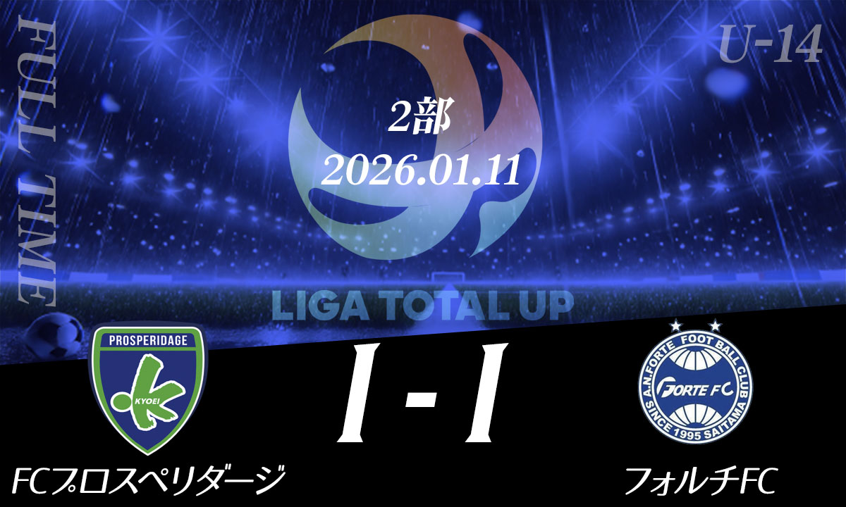 FCプロスペリダージ vs フォルチFC OG得点者16 池田岳31 山本涼介MOM16 池田岳 その他試合結果 鴻巣ラホージャ vs ファルカオ久喜2026.01.21FCプロスペリダージ vs S.S.CANTERA2026.01.21フォルチFC vs アヴェントゥーラ川口2026.01.21ファルカオ久喜 vs FC.L-BLOOM2026.01.21S.S.CANTERA vs 鴻巣ラホージャ2026.01.21FCプロスペリダージ vs フォルチFC2026.01.21越谷FC vs SHIRAOKA K’s SC2025.12.24FCプロスペリダージ vs SHIRAOKA K’s SC2025.12.24 FCプロスペリダージ vs YOSHIKAWA CITY FC2026シーズン『新規加盟クラブ募集スタート』
