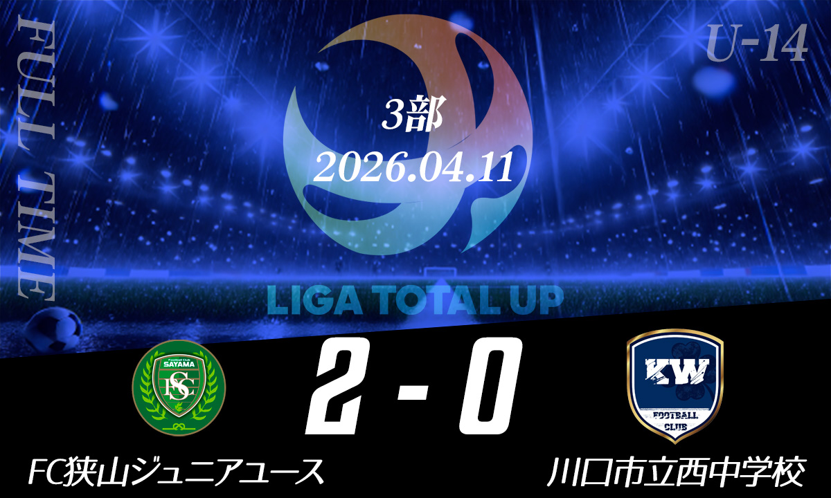FC狭山ジュニアユース vs 川口市立西中学校 45 榎本洋太郎40 福丸睦基得点者ー58 五十嵐秀弥MOM55 久保雄一朗 その他試合結果 OKEGAWA FC vs 川口市立西中学校FC狭山ジュニアユース vs 川口市立西中学校川越福原サッカークラブ vs FC狭山ジュニアユース川越福原サッカークラブ vs 鴻巣FCOKEGAWA FC vs 鴻巣FC鴻巣FC vs 川口市立西中学校 OKEGAWA FC vs 川口市立西中学校上尾SC vs フォルチFC