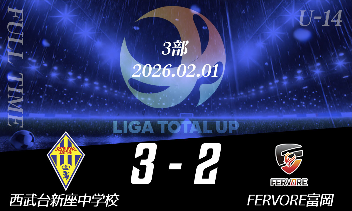 西武台新座中学校 vs fervore富岡 29 薄井士苑7 薄井アンディ29 薄井士苑得点者58 横山遥紀60 斉藤澪12 山口幾士MOM50 吉田翔 その他試合結果 西武台新座中学校 vs fervore富岡AGEO CITY FC vs fervore富岡FC.STIMOLANTE vs Y’s FOOTBALL CLUBFC.STIMOLANTE vs OTA CITY FCAGEO CITY FC vs FC八潮FC.STIMOLANTE vs FC八潮AGEO CITY FC vs FC.STIMOLANTEMSK19 vs 川口市立西中学校 2026/2/1~28試合結果AGEO CITY FC vs fervore富岡