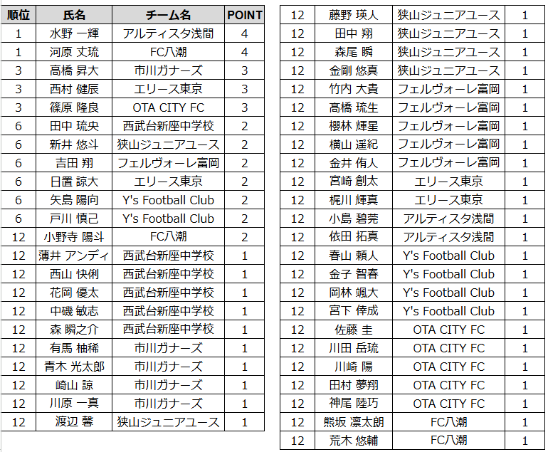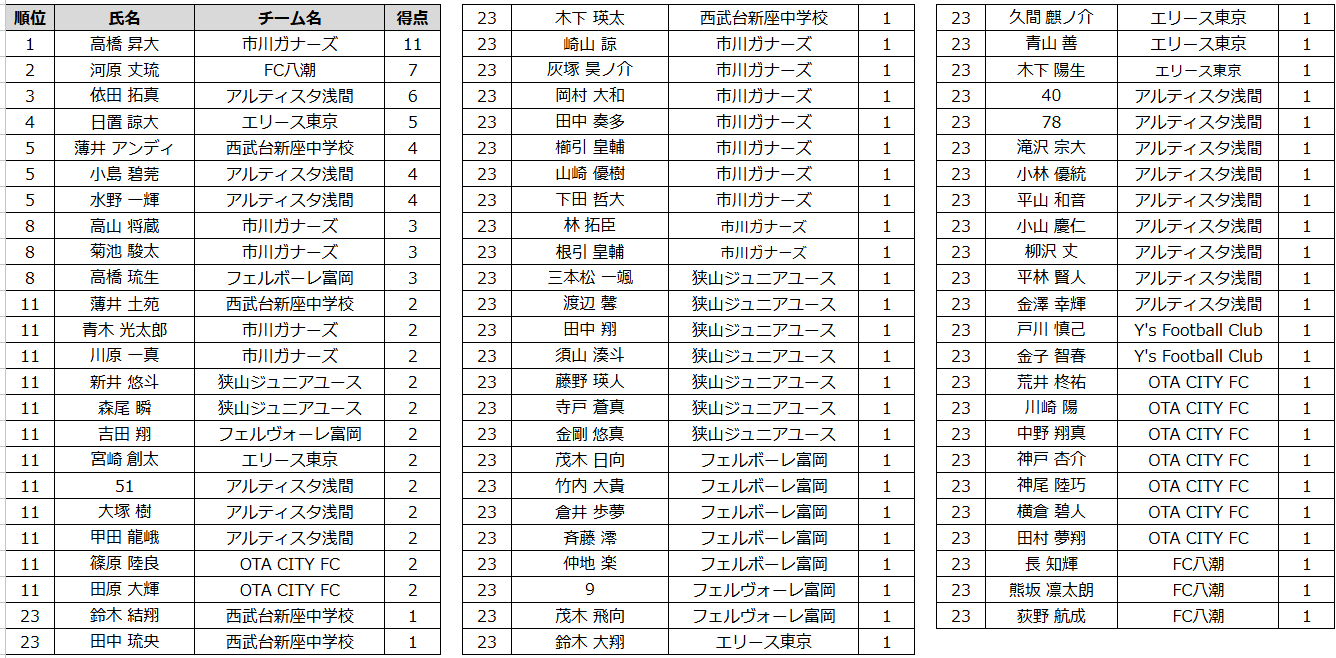 得点ランキング(参入リーグ)