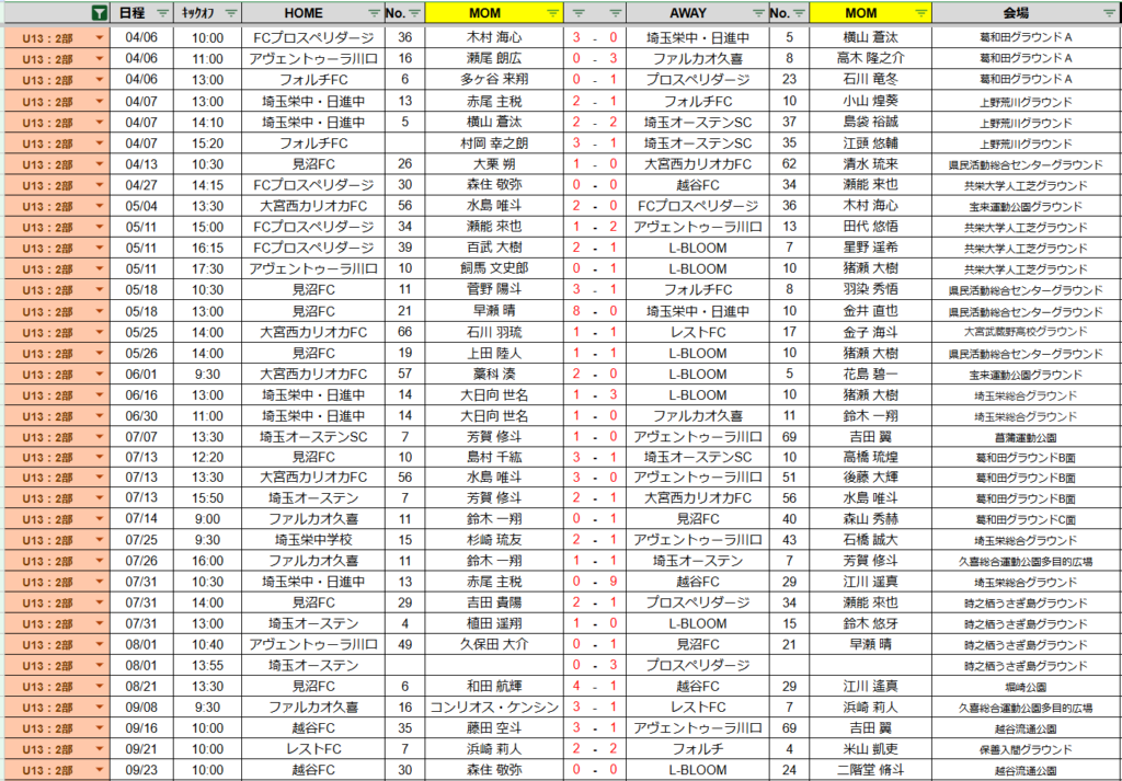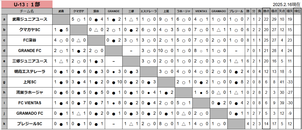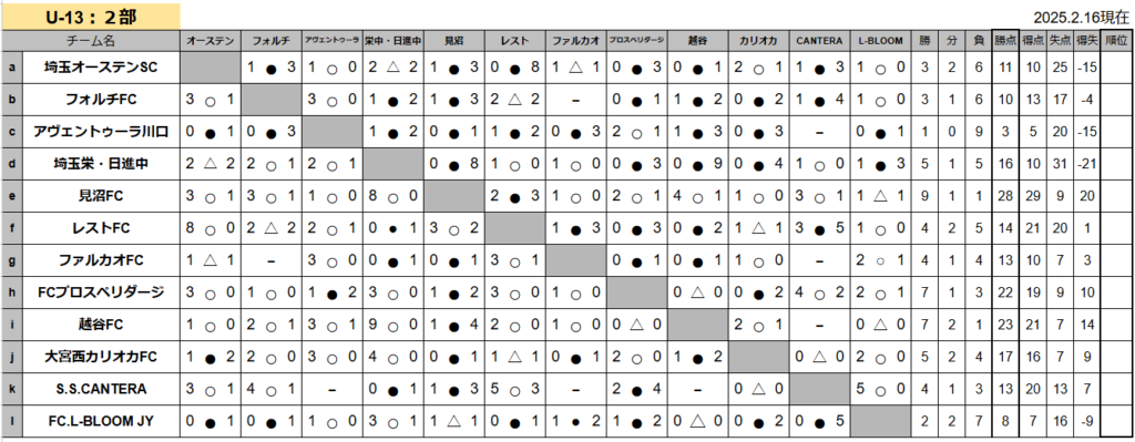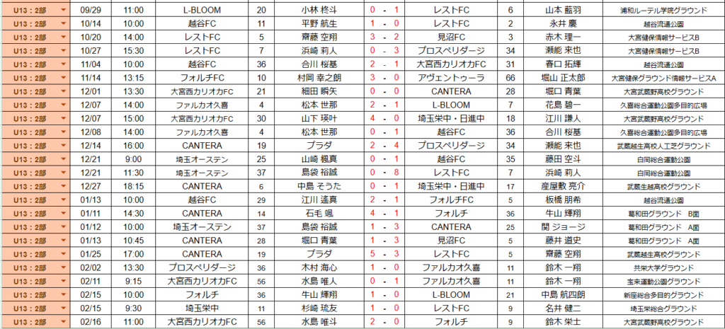 リーグ日程・結果(U13-2部)